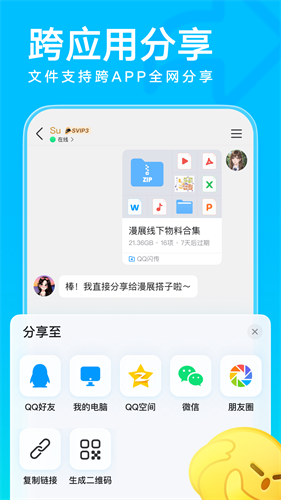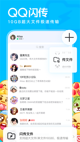 QQ支持大文件传输,用户可以方便地与他人共享文件和资料。