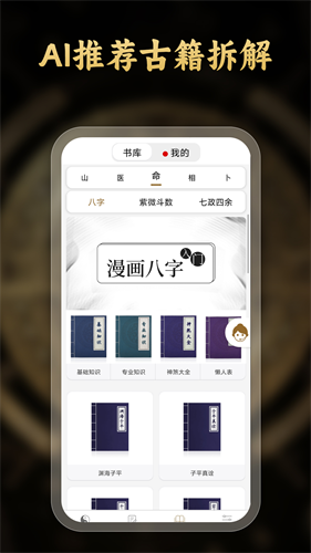 1、AI推荐古籍拆解,AI匹配八字,无需翻书断命。