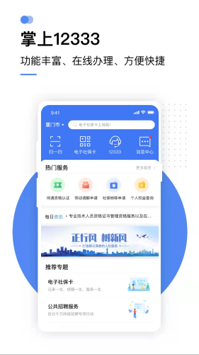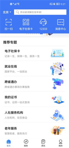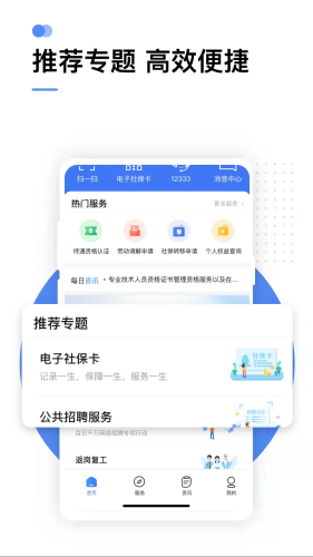 掌上12333官方下载app是全国人力资源社会保障政务服务app,由人力资源社会保障部统一建设,分为“首页”、“服务”、“资讯”、“我的”四大服务栏目,支持电子社保卡的集成服务,提供社保卡查询和全国工作招聘以及养老保险的资格和待遇的认证等,范围覆盖全国各地,通过它可以享受社保信息查询、服务机构、社会保障卡、公考信息发布、社保计算器、养老异地认证、办业务等便携服务以及各种费用的查询等等人社服务,掌上12333为全国社会公众提供服务,并不断完善服务功能,提升服务质量和水平,有需要的用户可以直接下载使用哦。