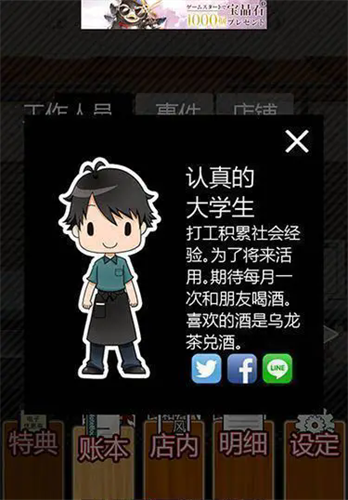 4、玩家可招募并培养员工,提升他们的工作能力以提高居酒屋运营效率。