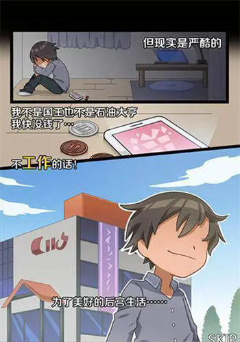 1.打开游戏之后,就是一段剧情介绍,大体上就是没钱氪金了,所以要出去找工作