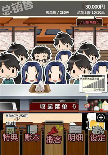 1、玩家需经营日式居酒屋,合理安排桌椅摆设与酒品供应以吸引客人。