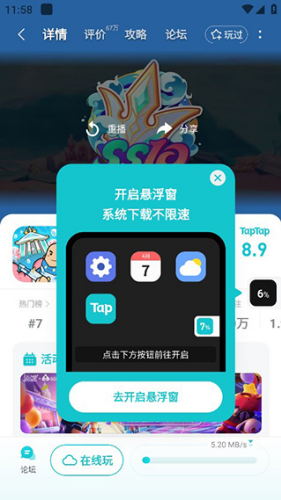 4、如果有需求的话,还可以开启悬浮窗,方便以后下载游戏。