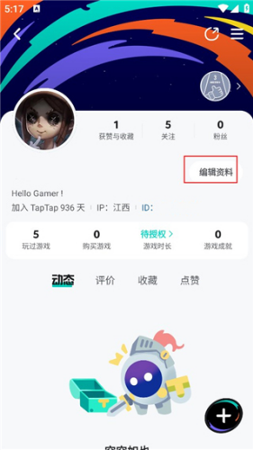 1、在本站下载taptap后登录,打开点击右上角头像。