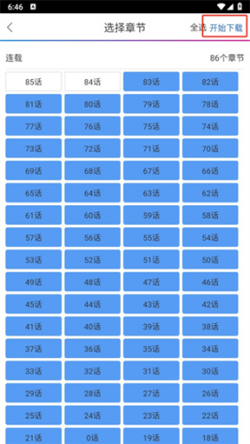 4、最后选择需要下载的章节之后点击【开始下载】即可。