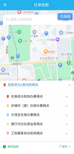 10、还能通过手机GPS定位个人位置,了解周边的定点医院、定点药店和社保经办机构和社区。