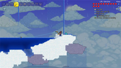 1、在完成角色自定义后,游戏就把玩家扔进了一个完全随机生成的像素世界中,手头的工具意味着玩家需要造东西、探索世界并打败怪物。