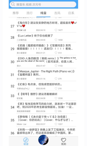 1、软件中的歌曲十分的多大家能够直接在搜索处查找本人想听的歌曲。