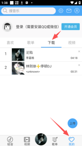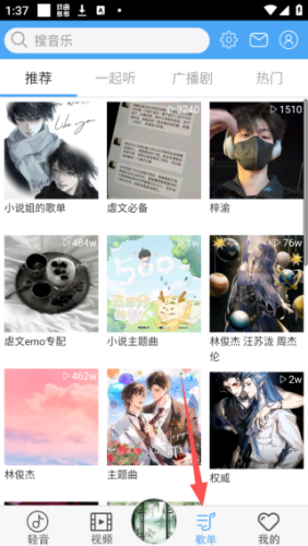 打开手机上的轻音社软件,点击底部的“歌单”选项。