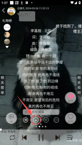 3、找到歌曲后,在播放界面,点击底部“下载”按钮。