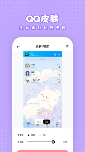 ·透明主题:自己聊天背景主题自己定,支持QQ、微信的聊天主题桌面设置。