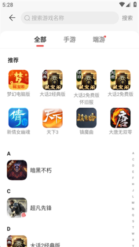 3、支持多种类型的游戏,能够快速的搜索找到喜欢的游戏类型。