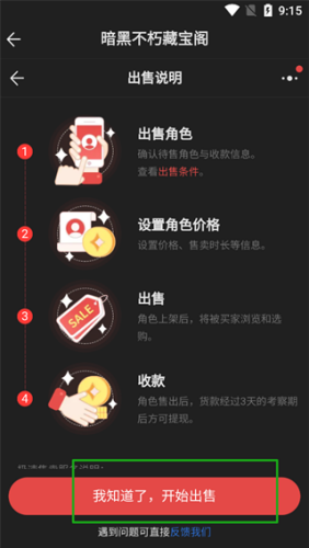 3、点击我知道了,开始出售,输入价格点击发布即可