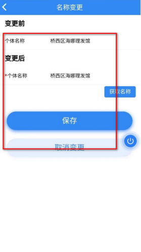 3.在上一步点击名称变更,填写新的信息然后点击保存。