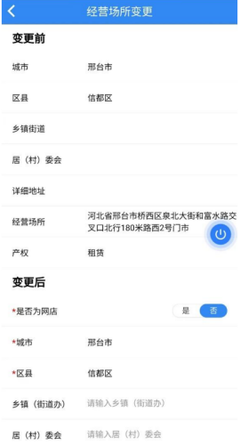 5.在第2步点击经营场所变更,填写新的信息之后点击保存即可。