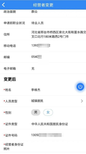6.在第2步选择点击经营者变更,填写新的信息之后点击保存即可。