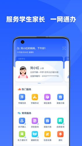 学籍查询:家长和学生可随时查看学籍信息,包括基本信息、异动情况等。