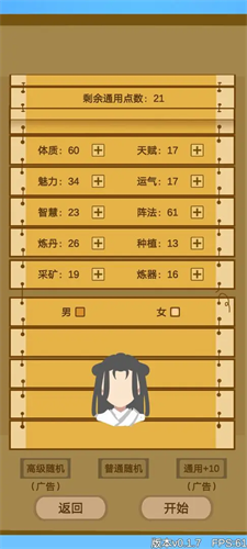 2、这里玩家可以在体质、魅力、智慧、炼丹、采矿等进行分配剩余通用点数;