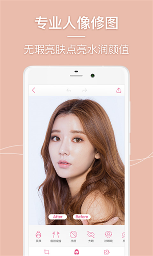 1、瘦脸,大眼,磨皮,祛眼袋,能先定制再自拍,亮眼皆可自定义,释放你的独特美。