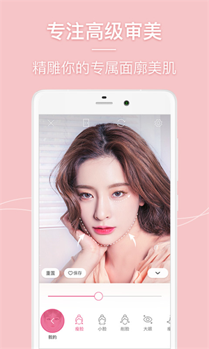 1、美形定制:先定制再自拍,瘦脸,大眼,磨皮,祛眼袋,亮眼皆可自定义,释放你的独特美。