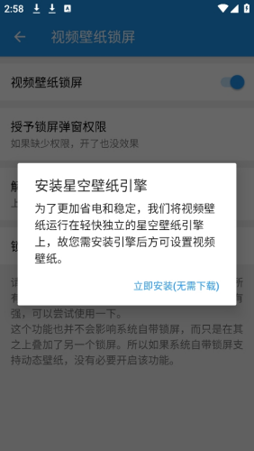 5、点击视频壁纸锁屏,安卓星空壁纸引擎后即可设置锁屏壁纸