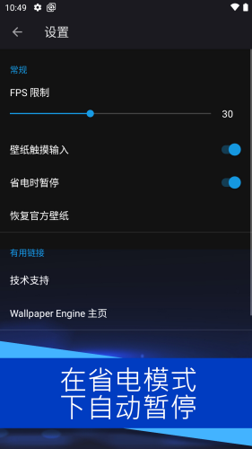 5、在省电模式启用时自动暂停,提供 FPS 和质量设置。