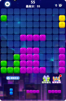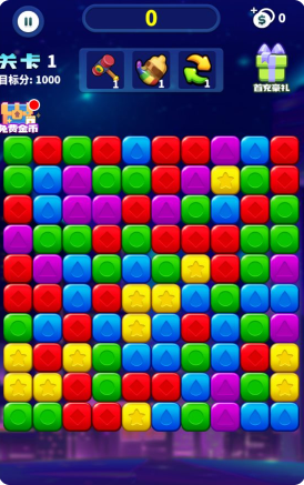 类似于俄罗斯方块,策略摆放,同颜色一行一列可消除