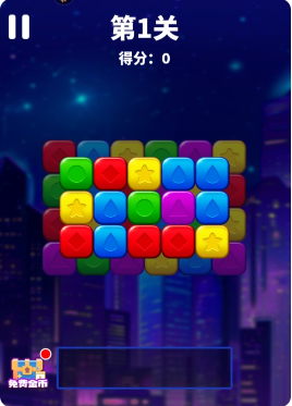 点击上方的方块,三个相同的消除,多余的会堆积,堆积满了就算输,消除全部方块算赢