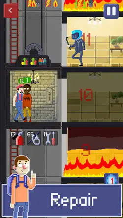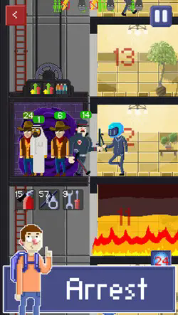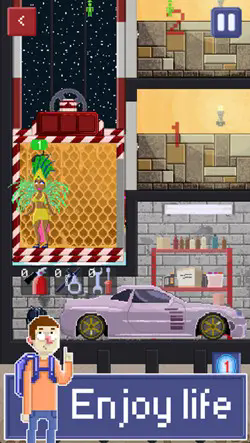 采用简洁的像素画风,电梯、楼层与角色造型充满趣味,色彩搭配柔和,带来轻松舒适的视觉感受。