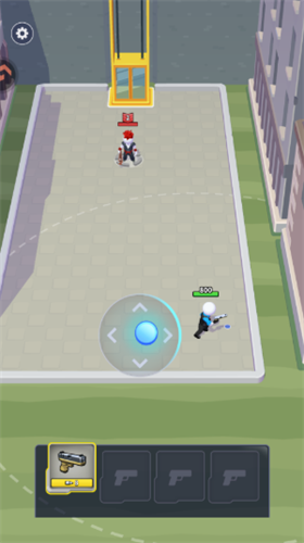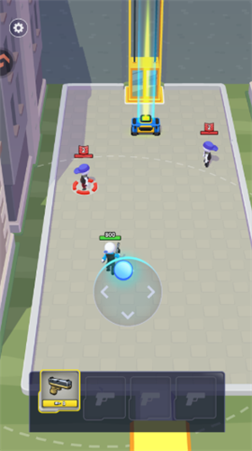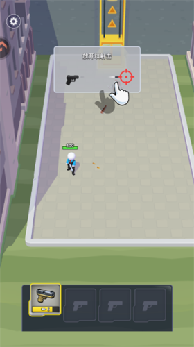 2、先学习基础玩法:面对敌人时手握枪械,通过摇杆移动控制主角,进入有效范围后发起攻击。