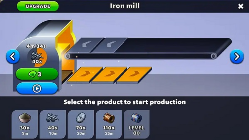 您从冶炼厂开始(采用矿石和煤炭来制造钢铁)。随着等级的提高,可以使用的工厂也会越来越多。例如,锯木厂一开始生产木材,后来可以生产桶、胶合板和托盘。