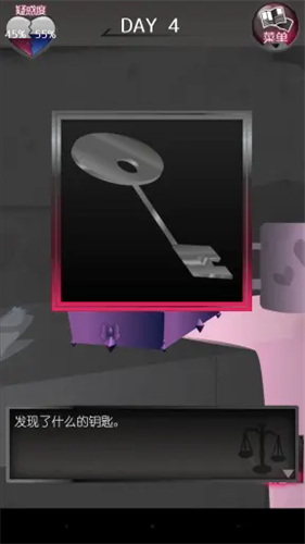 先去点击桌面的紫色小盒子得到钥匙,然后到暗门处(左边墙看起来颜色不同的地方)选择试着按下。