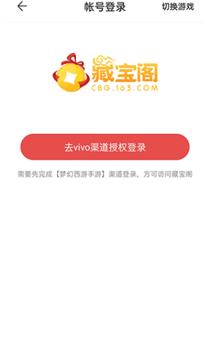 2、账号授权之后玩家需要进行vivo账号进行授权,小编建议直接登录对应游戏的vivo账号,然后再登录藏宝阁。