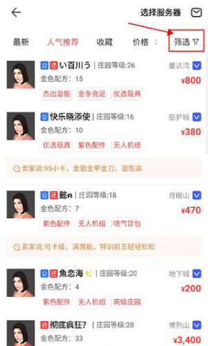 按照自己细化的条件筛选,满足不同的游戏交易账号类型!