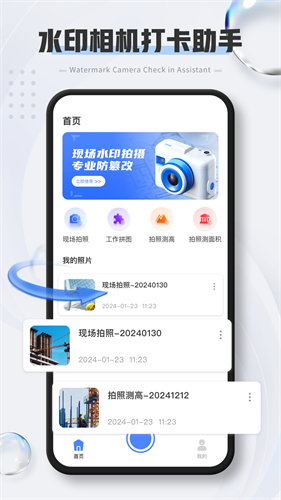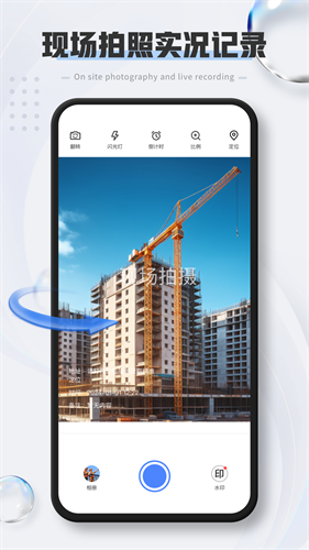 支持现场图片、视频拍摄实时gps定位,自动添加地址、时间日期、经纬度、海拔、天气等水印。