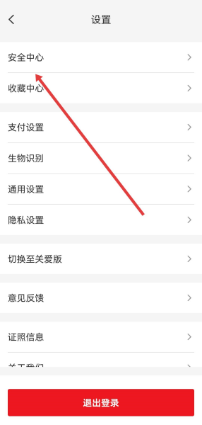2、在个人账户设置的页面中,需要点击安全中心的选项,跳转至安全中心的页面。