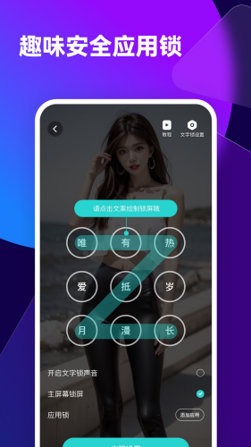 2.提供主题套图功能,让您随心更换整套壁纸、文字锁和应用皮肤,尽情展现您的个性与创意。