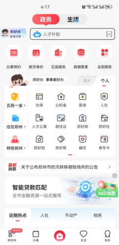 郑好办融合了社保、公积金、教育、医疗、税务、公安、民政、房管、不动产等部门,为市民提供一站式综合政务服务。以公积金提取为例,下载APP的市民只需要通过扫脸认证就可进入“一件事”专区,点击对应的事项,不需要提交任何材料,短短几秒钟,需要提取的公积金就能够到账。