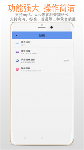 支持mp3、wav等多种音频格式,支持高清、标准、普通等三种录音质量。