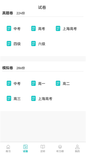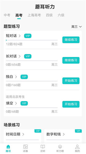 提供了全国不同地区的历年听力真题来让用户进行在线学习。