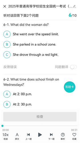 6、考试全真模拟:内置计时器与考场音效,还原中高考/四六级真实考试环境,提升临场应变能力。