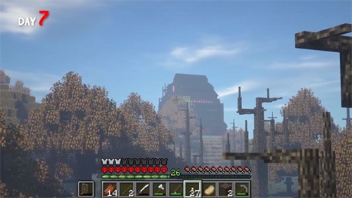 5、白天外出探索寻找食物和材料,标记重要地点如村庄或矿洞,夜晚返回基地防守防止被僵尸突破防线。