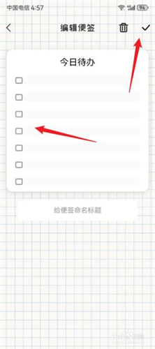 3、进入到编便签页面,输入今日待办内容,点击“√”。