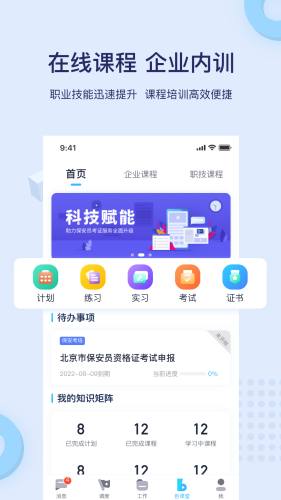 在线高品质专业培训课程,保安员资格证、等级考试报名、培训、考试整体解决方案,量身打造企业专属学习平台,提升员工能力。