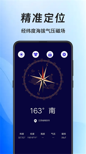2、应用中有夜间和白天两种指南针模式,保护用户的眼睛不受伤害,提升体验;