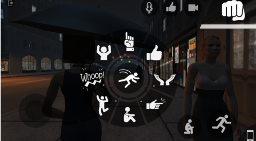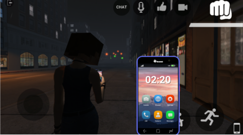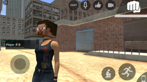 4、进入游戏里,可以先点击【chat】对话,左边的圆圈是前进或者后退,右边则是蹲下和跳跃