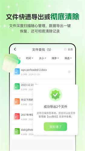 6、支持了文件快速的导出,用户可以进行各种数据文件的清理工作。
