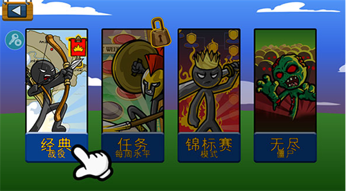1、下载进入火柴人战争遗产召唤版中文最新版,点击开始游戏,选择游戏模式;