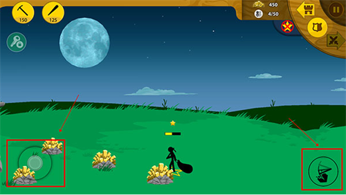 技巧:(需要手不残,抛物线计算准确,手机的屏完好)开局造一个弓箭手,控制,往前走几步,观察敌军的弓箭手,矿工等的位置,用超远距离冷射♂直接在己方雕像附近击毙对方