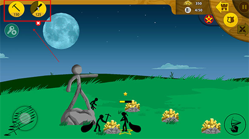 3、点击右上方,可以创造专门挖矿和进攻的士兵;